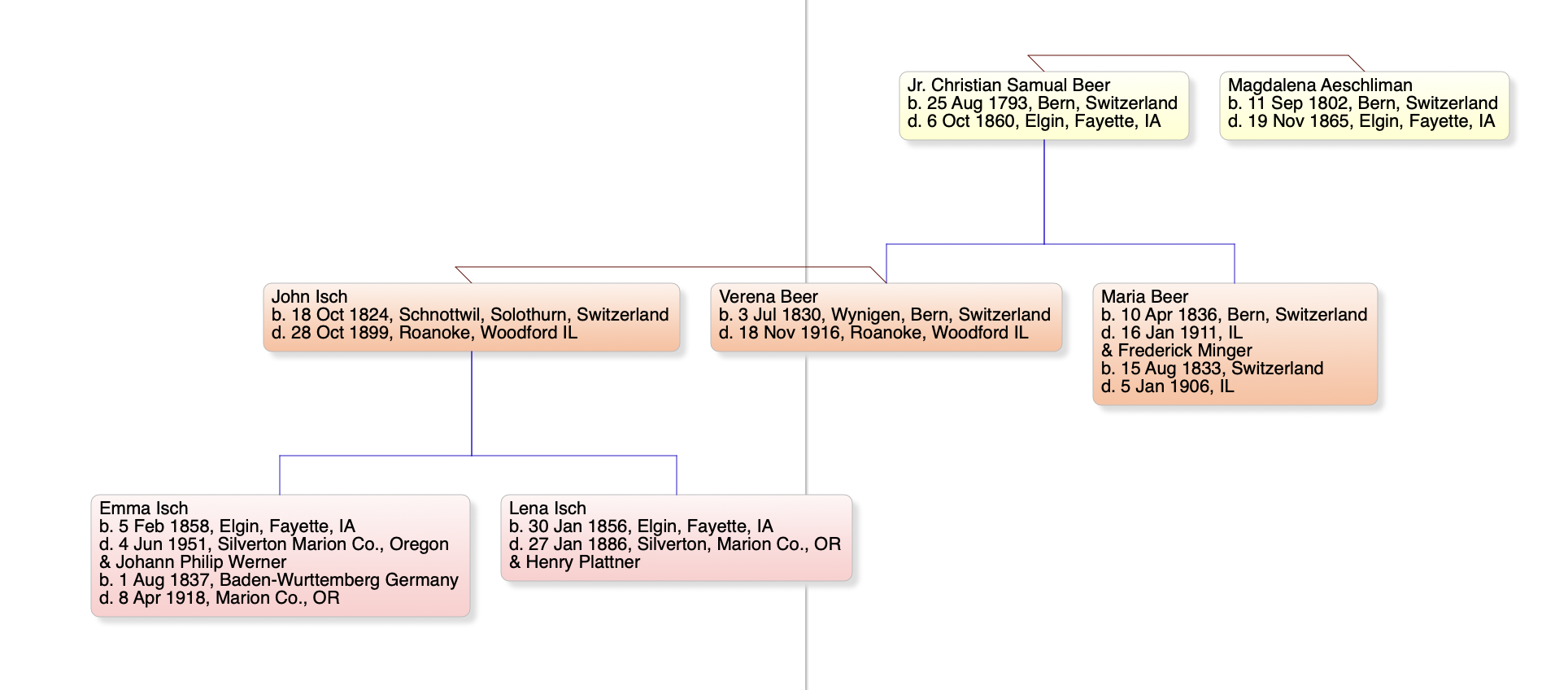 Caroline Isch married Henry Plattner, who came from Switzerland to Roanoke IL in 1874.